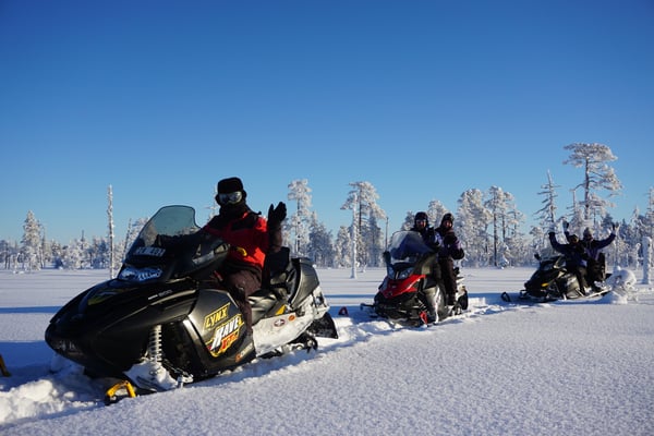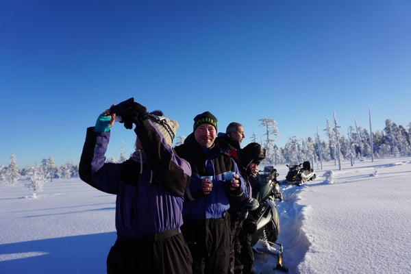 Bei täglichen Temperaturen von minus 25-30 Grad und den tollsten Sonnenauf & Untergängen haben wir aufregende Huskytouren und rasante Schneemobiltouren unternommen.